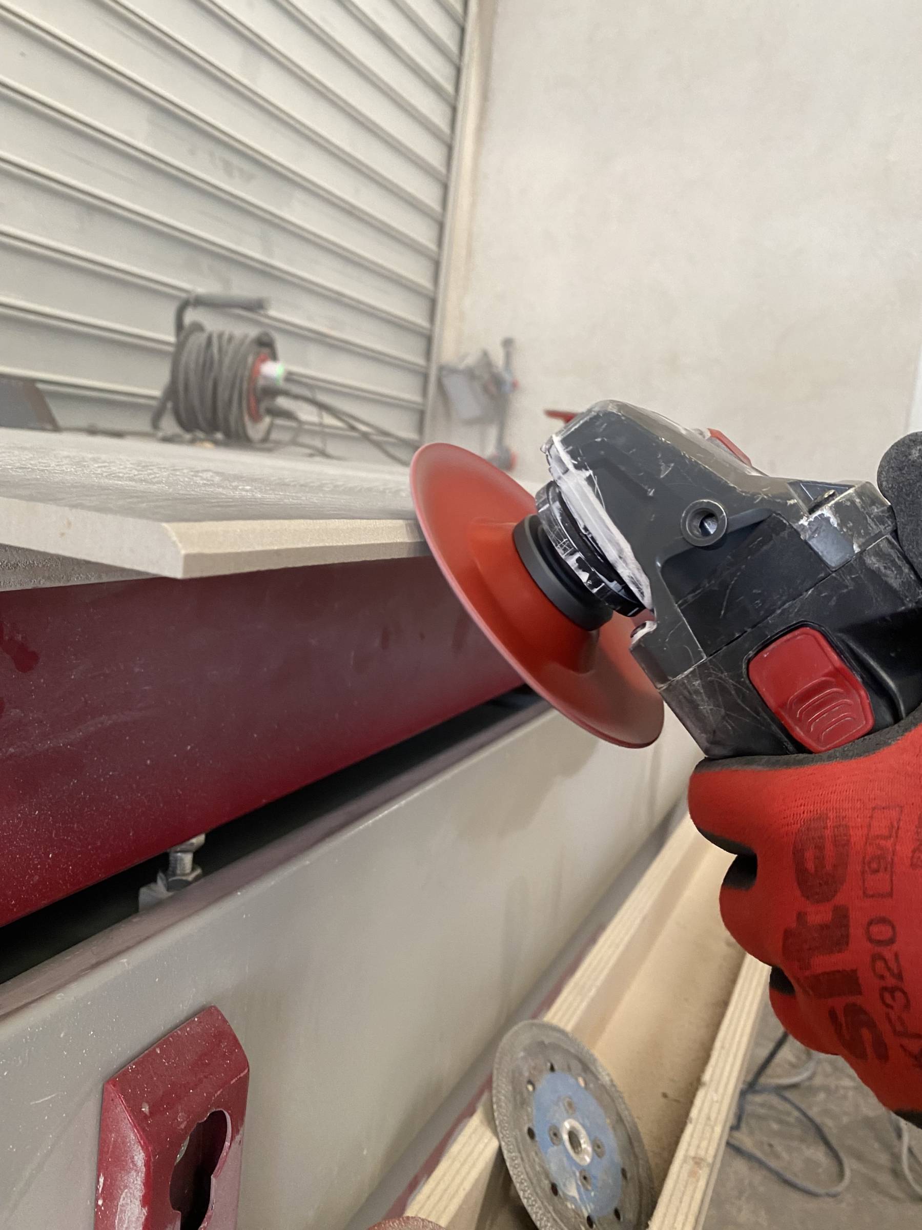 Pour le compte d’un magasin de carrelage situé à Six-Fours près de Toulon, notre atelier a réalisé un façonnage sur grès cérame, destiné à l’habillage d’un escalier extérieur.